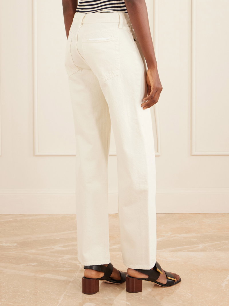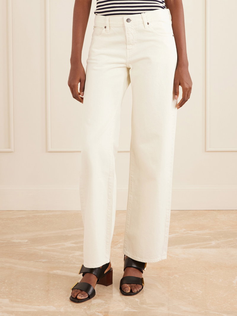 FRAME's jeans are cut for a relaxed, easy fit with a clean, laid-back silhouette. Designed with a mid-rise waist and straight, slightly loose legs, they fall effortlessly through the body.