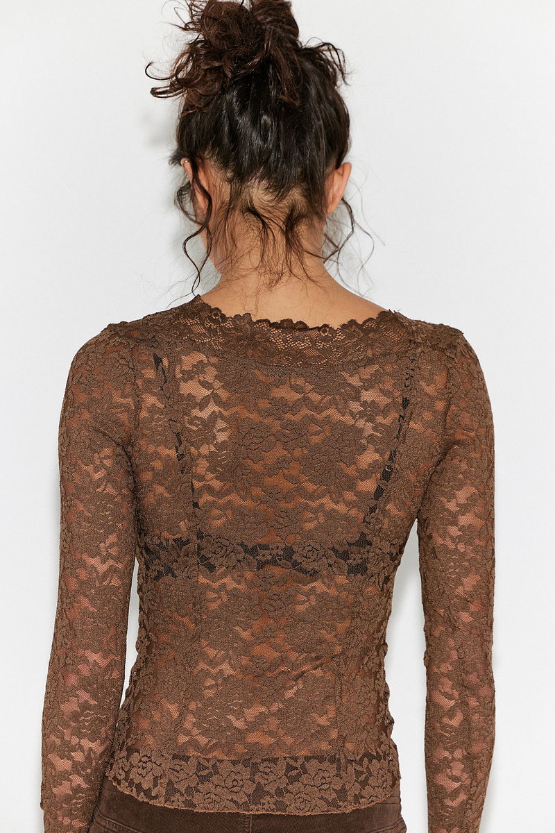 Sheer and stunning in floral, this long sleeve top from Intimately features vertical seam details, a wide scoop neck, and long fitted sleeves for a forever flattering silhouette.