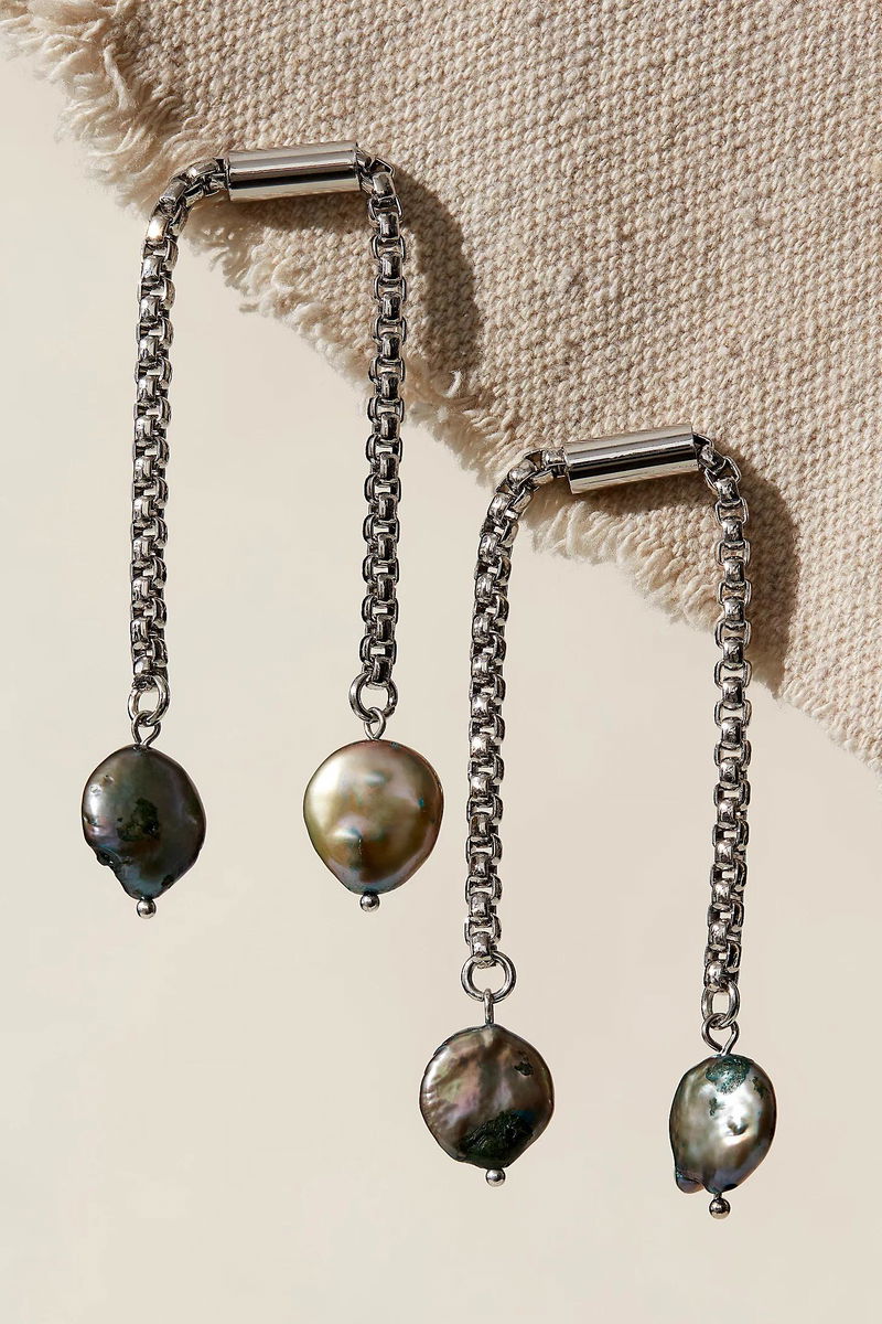 The perfect blend of cool and classic, these effortlessly edgy earrings feature Mother of Pearl pendants hanging from a timeless metal chain.