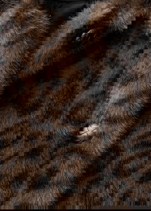 Your coat closet just got so much cooler. This eye-catching outerwear piece features a printed sherpa fabrication and exaggerated faux fur trim with contrast ties and a collared neckline. Shapeless, longline silhouette. Printed sherpa fabrication, collared neckline, exaggerated faux fur trim, tie closures at the front, contrast ties at the sleeves, lined. Not only will it keep you cozy, this coat will also turn heads with every wear.