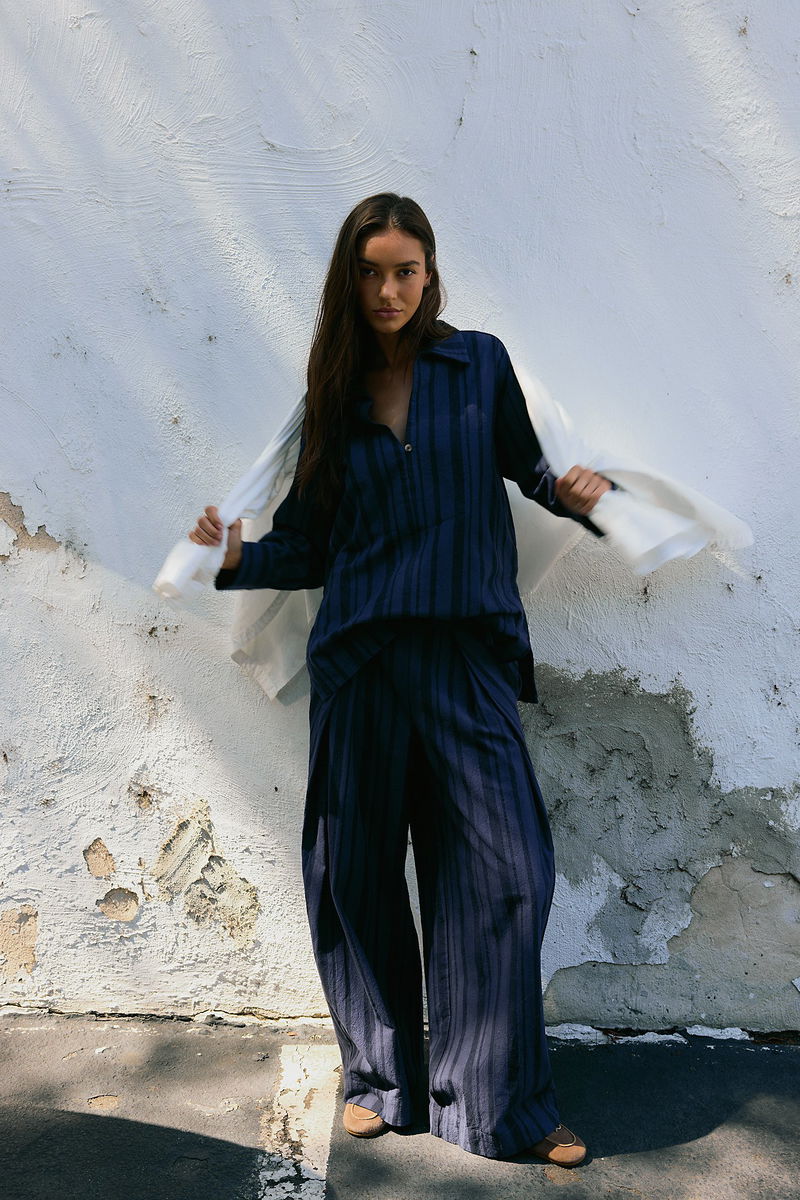 It doesn’t get more laidback than this set from free-est, featuring a collared pullover and extra wide-leg pants in a textured cotton fabrication for the perfect more of comfy and elevated.
