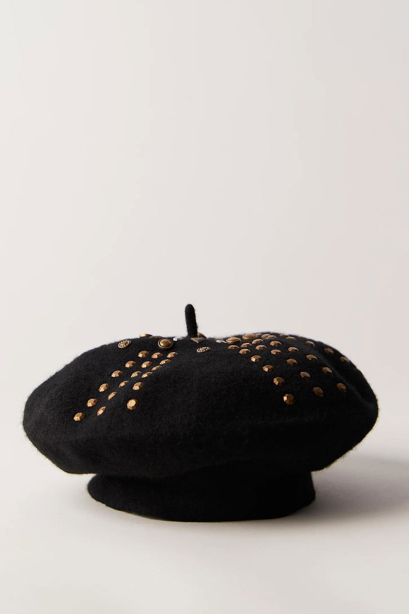 A fun take on a classic, this felt beret is adorned with mixed studs for a playful touch.