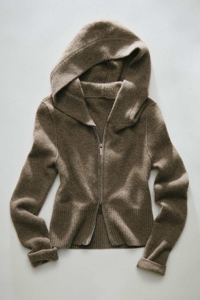 Embody a classic and cozy style, featuring a flattering cropped fit, ultra-soft cashmere fabrication, and an attached hood for a playful twist.
