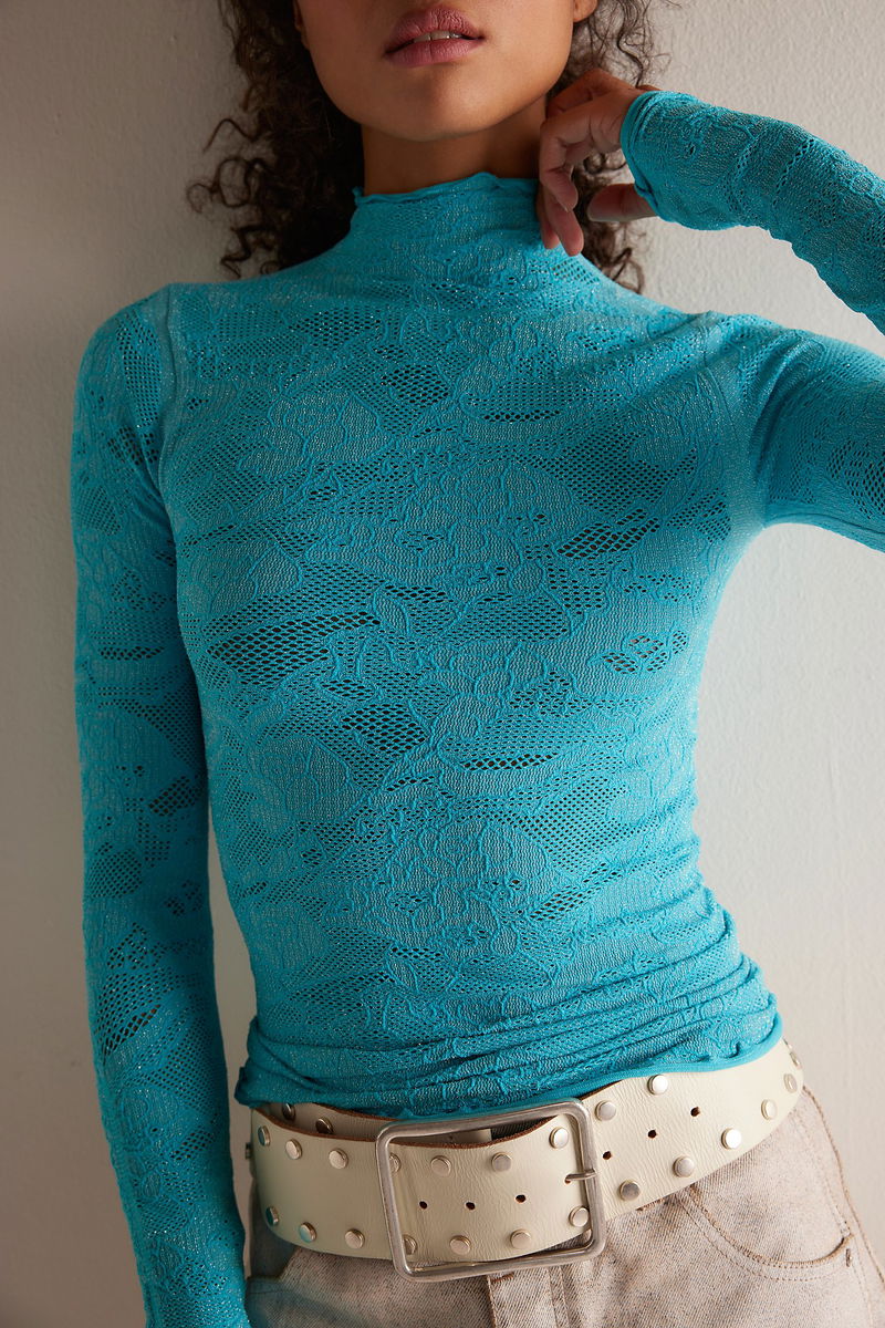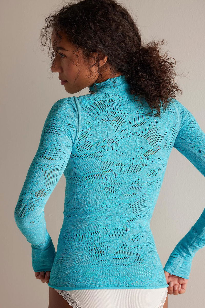 Layer away with this stunning top from Intimately, featuring our favorite seamless lace fabrication, a subtle shimmer, a mock neck, and long, fitted sleeves for a forever flattering silhouette.