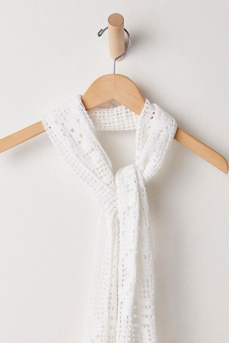 The perfect touch to add to every 'fit, this effortless scarf is featured in a thin silhouette and crochet fabrication for a forever classic finish.