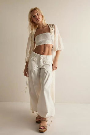 From flowing maxi dresses to ethereal white tops, Free People's aesthetic embodies feminine style with a contemporary spirit. Cargo trousers meet cotton Broderie Anglaise bralettes, vintage florals and handcrafted detailing like crochet, lace, smocking and embroidery, in everyday pieces made for summer.