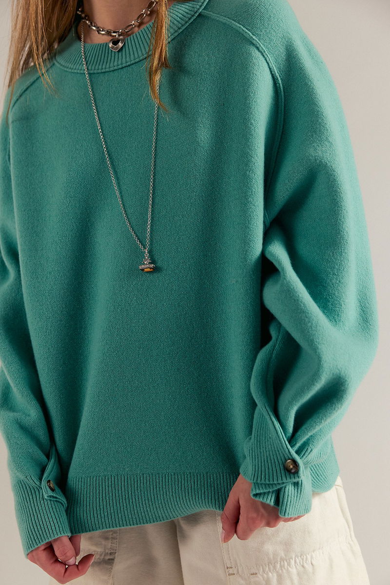 Your ready-for-anything sweater, this cozy knit features a classic, relaxed silhouette, a super-soft wool-blend fabrication, and a gathered button cuff detail for a fresh, modern twist.