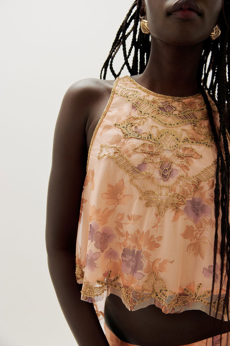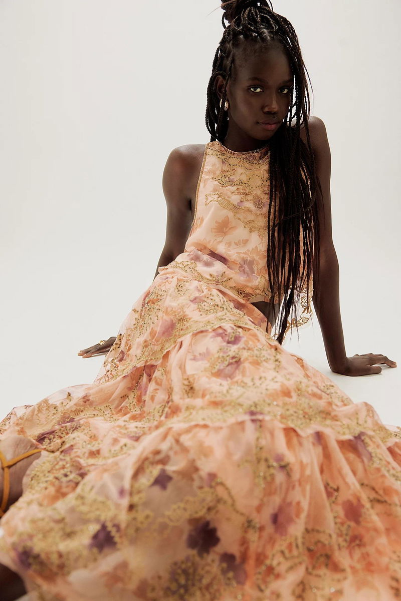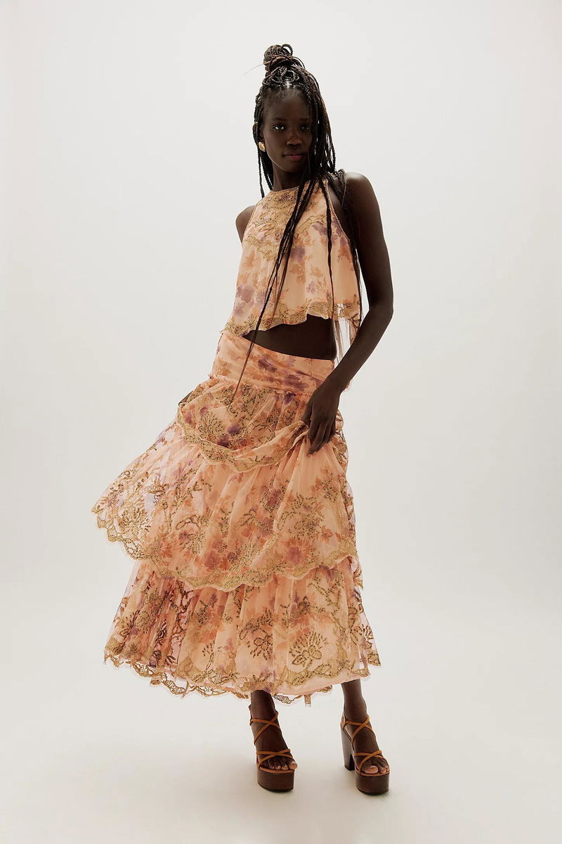 Dreamy details are everything with this ethereal set, featuring a swingy tank and tiered maxi skirt with embellished accents for a sparkling finish.