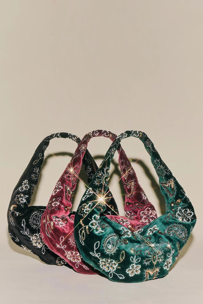 The most effortless way to add a little something special to every style, this super cute shoulder bag is featured in a slouchy, relaxed fit with defined floral beading throughout for the perfect finishing touch.