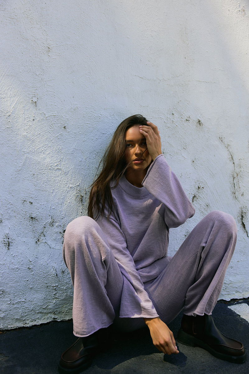 Your new go-to instant outfit–this sweater set from free-est features an oversized long sleeve and flared pants is a breezy cotton-linen knit for year-round wear.