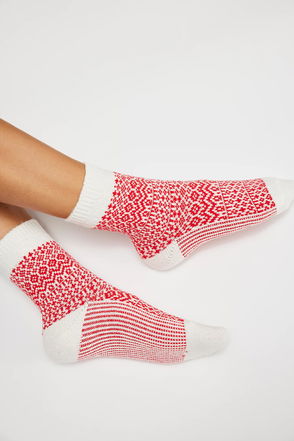 Add a luxe touch to your socks collection with this staple pair featured in a crew silhouette and stunning cashmere fabrication with staple, seasonal printing throughout for the perfect finishing touch.