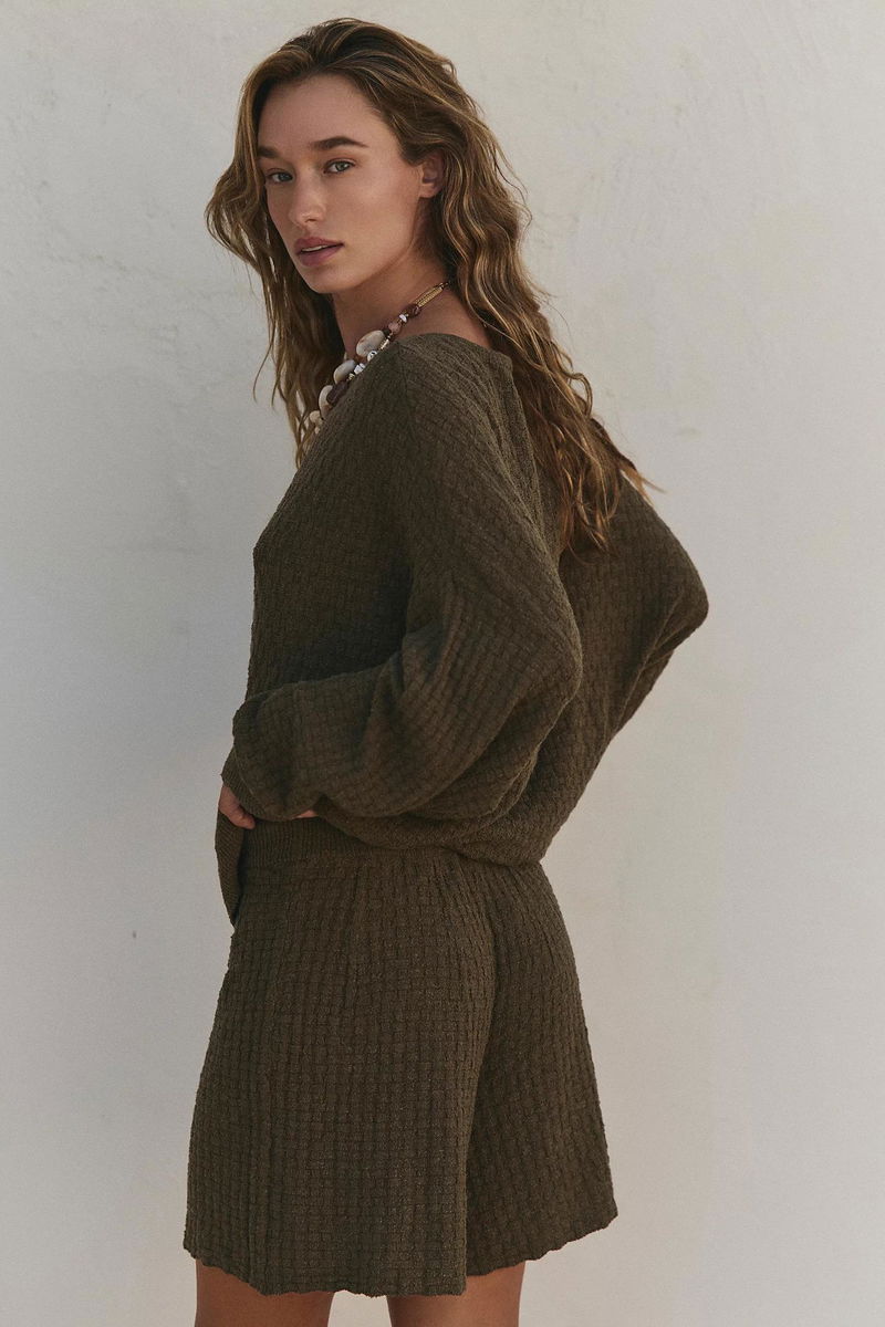 A laidback look, all in one–this sweater set from free-est features a slouchy long-sleeve top and longline shorts in a textured knit for the perfect dose of detail.