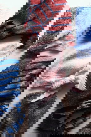 Stay warm with this oh-so-cozy and chic bonnet, featuring a striped, knit fabrication and an adjustable self-tie closure.