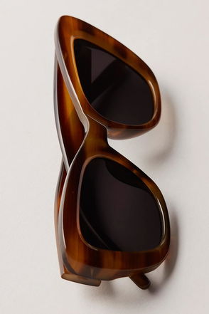 This bold pair of sunglasses features a chunky, square frame that makes an instant statement while staying easy to wear with tinted lenses for the perfect colorful pop.