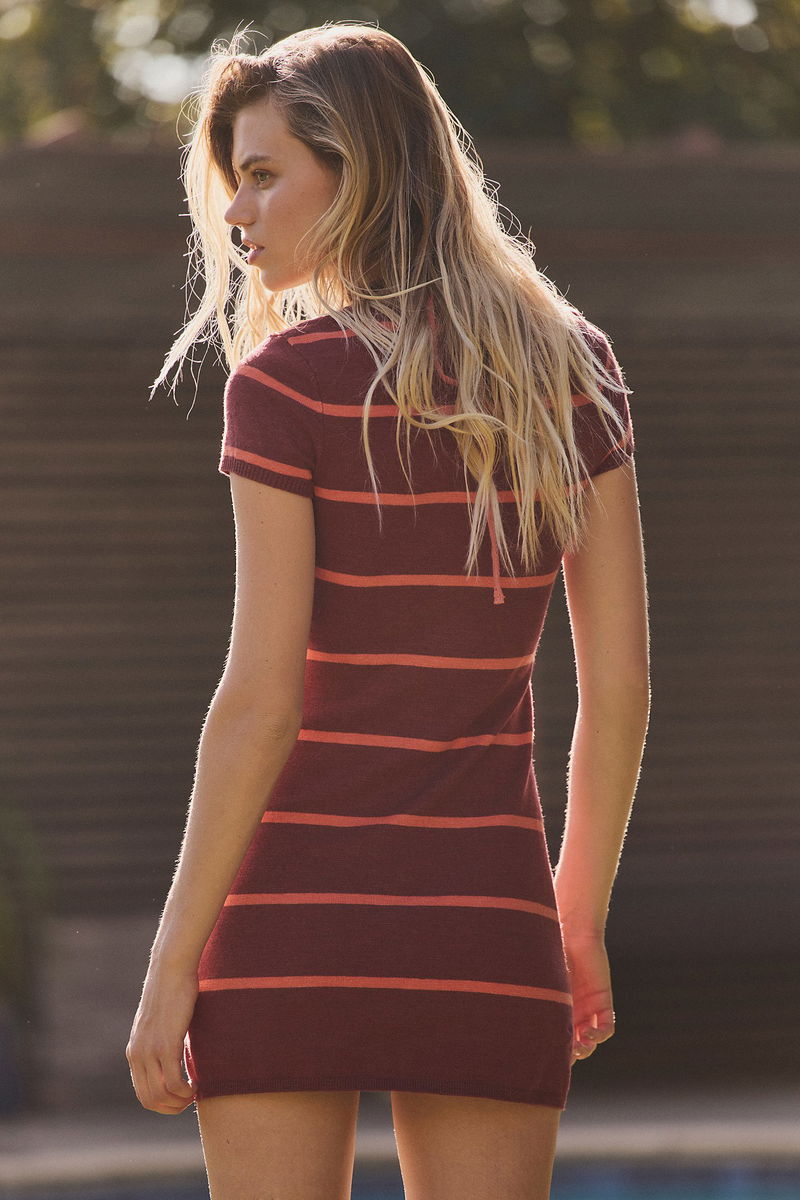 So flattering with a bold finish, this sweet knit mini dress from free-est features a henley neckline and striped print for the perfect added pop.