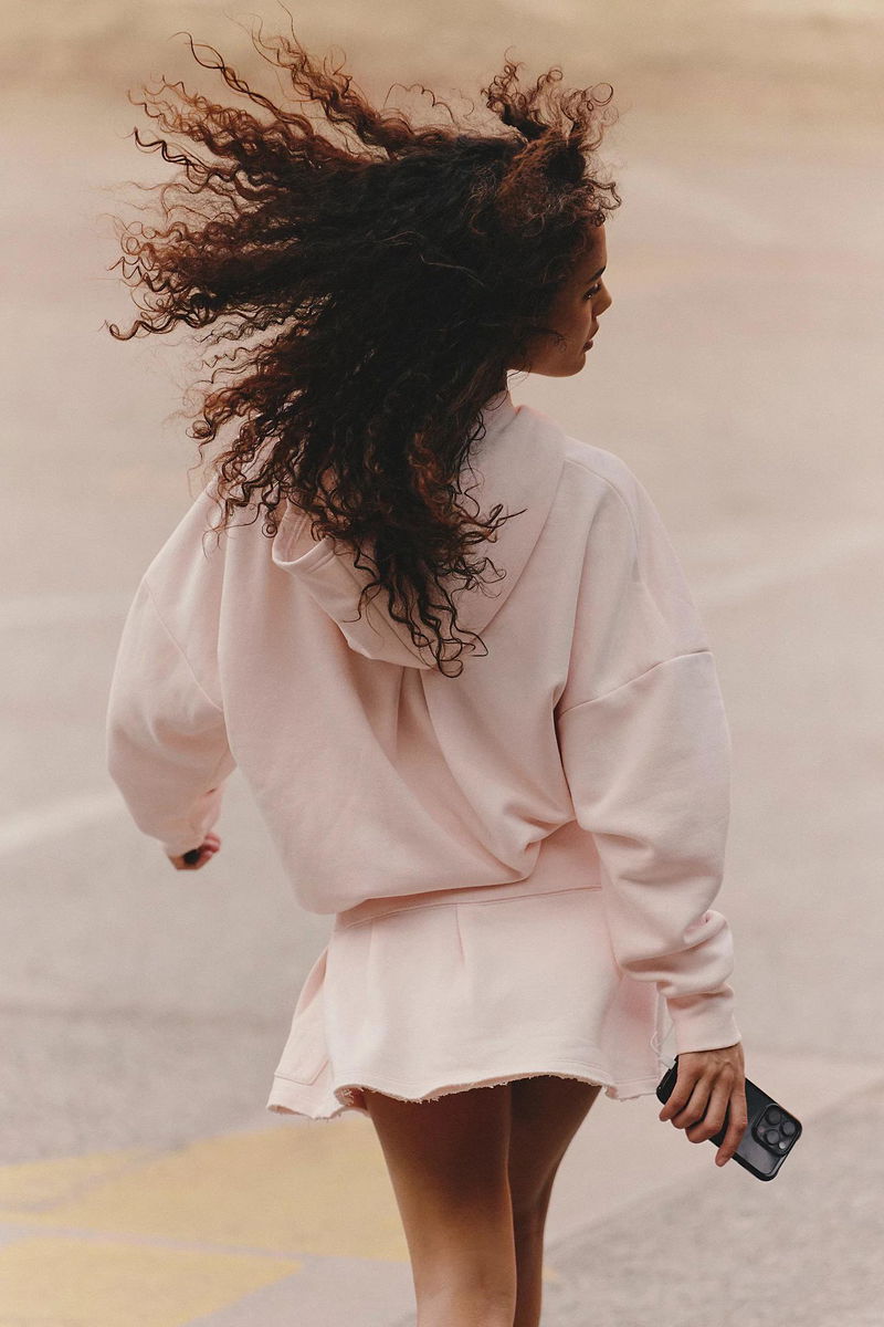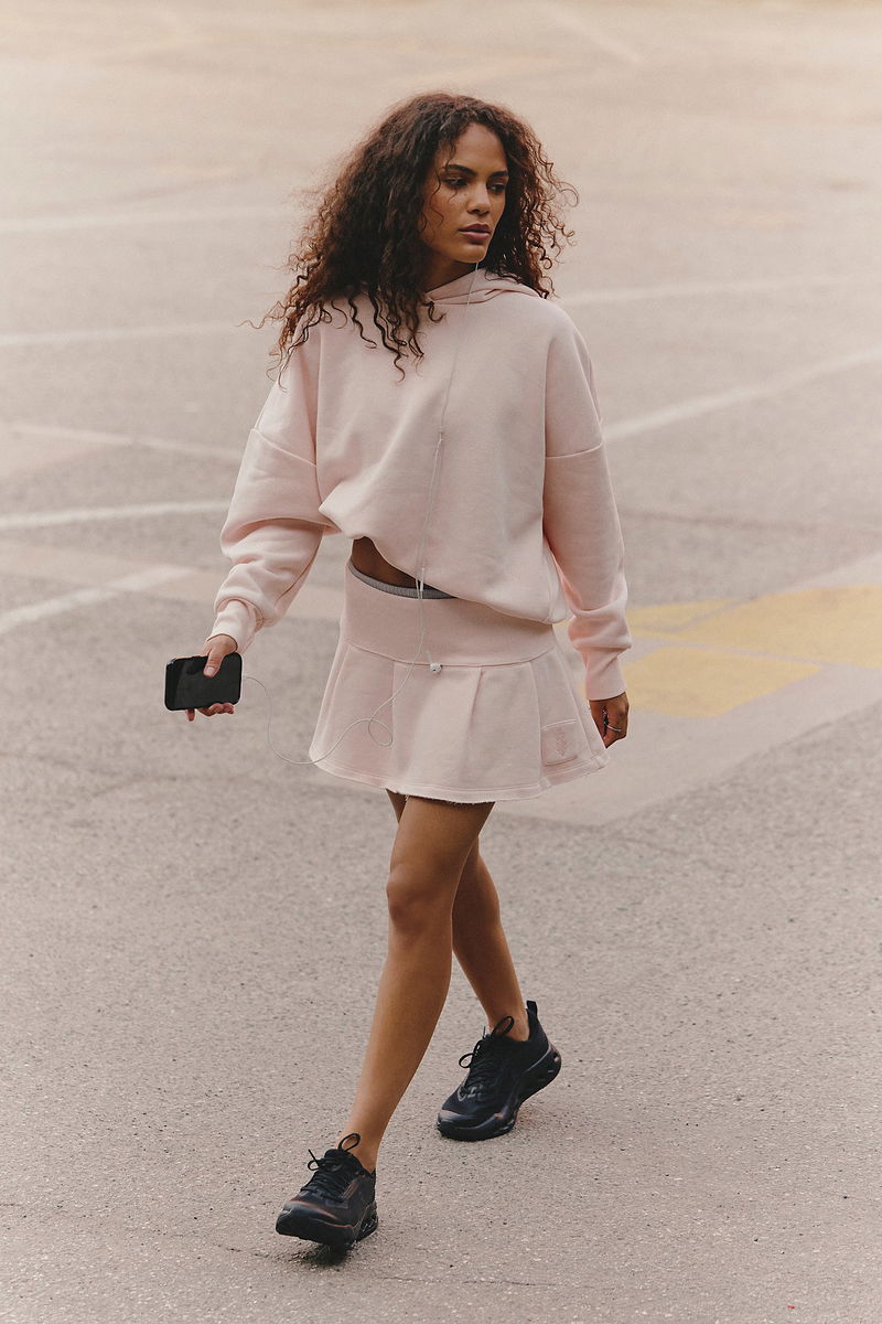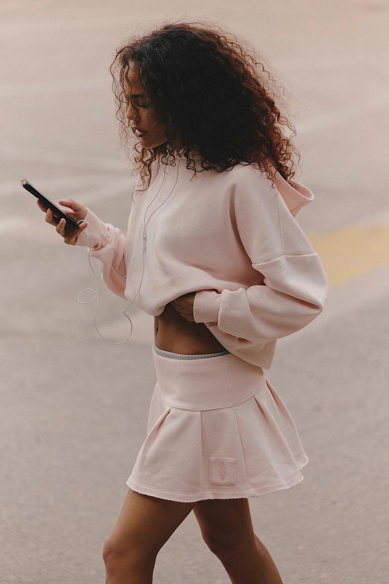 Ultra-comfy and easy to throw on, this sweatshirt and skirt combo from our Sprint To The Finish collection is the perfect to-from set. Cropped, relaxed-fit hoodie is paired with an ultra-short mini with pleated detailing.