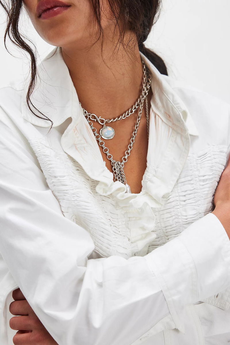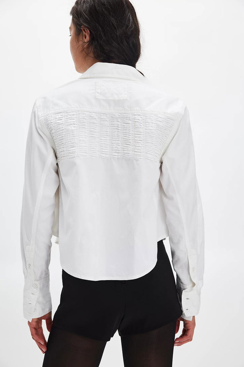 Bring timeless charm to any look with this classic button-down from our We The Free collection, featuring a sleek collared neckline, a lightweight cotton fabrication, and playful ruched accents for added dimension.