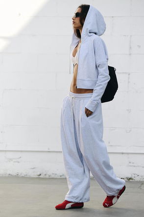 The essential set, now in a sand washed hue. Featuring a slightly cropped, relaxed-fit hoodie top with coordinating high-rise tapered sweatpants for the perfect done-in-one look no matter the activity.