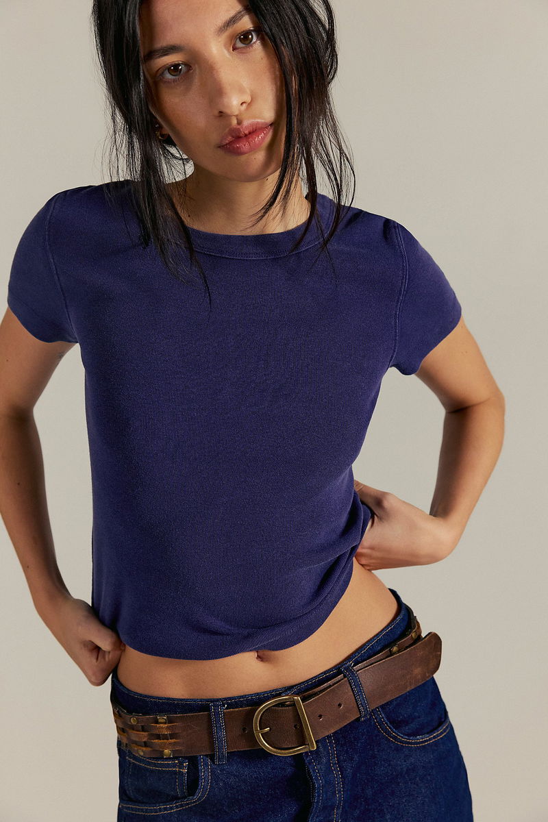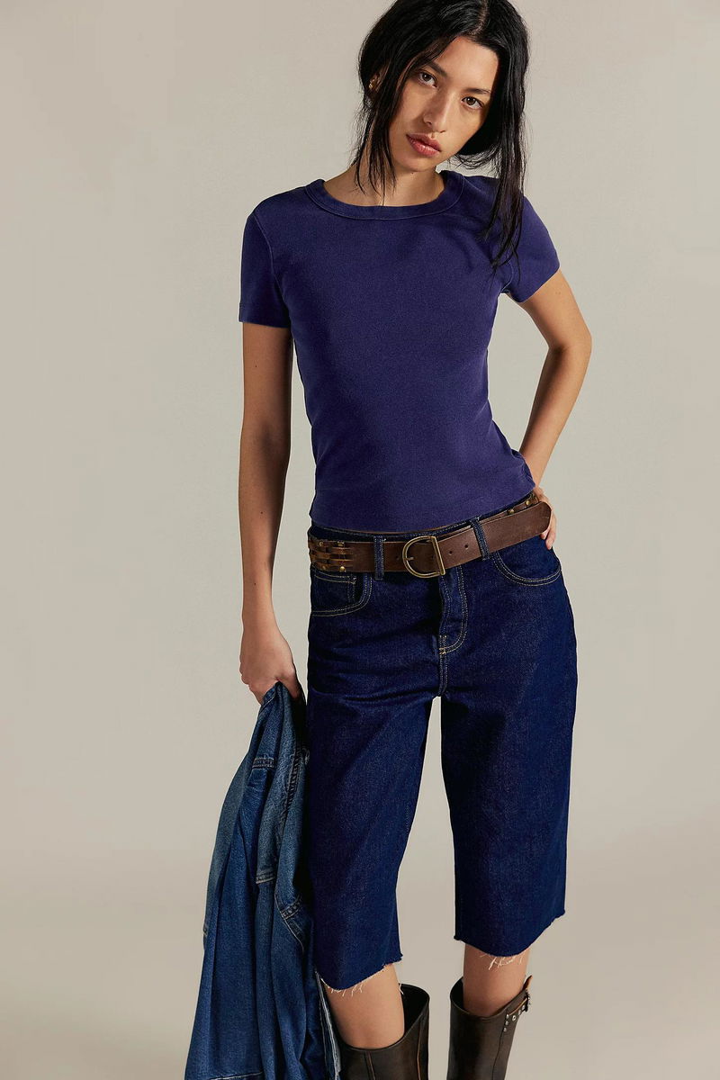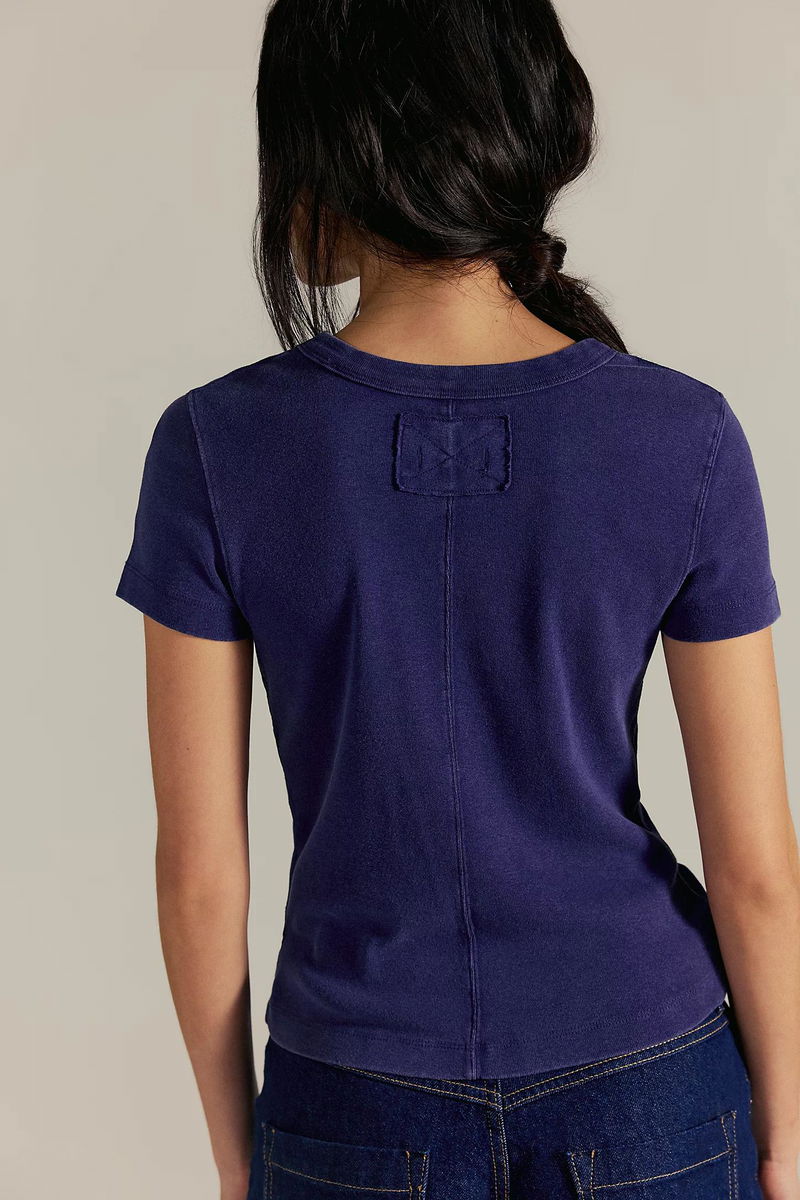 Your new favorite essential tee, this crewneck from We The Free, is crafted from ribbed cotton fabrication, features a full-length silhouette, fitted sleeves, and understated distressed detailing at the seams, making it a versatile wardrobe staple.