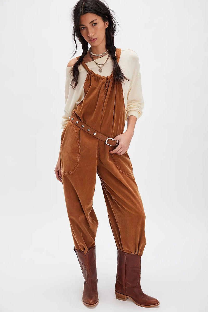 A breezy staple gets fit for cozy season. This jumpsuit from our We The Free collection is featured in a cozy cord and breezy silhouette for endless layering throughout the year.