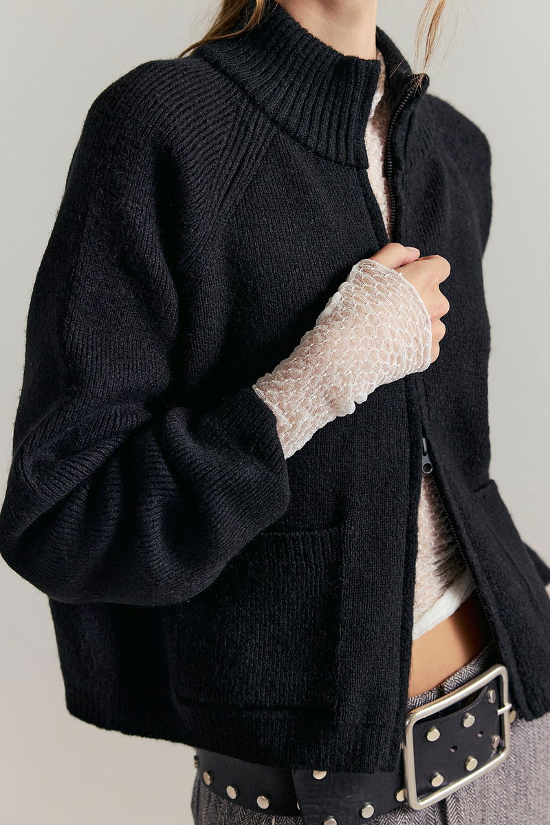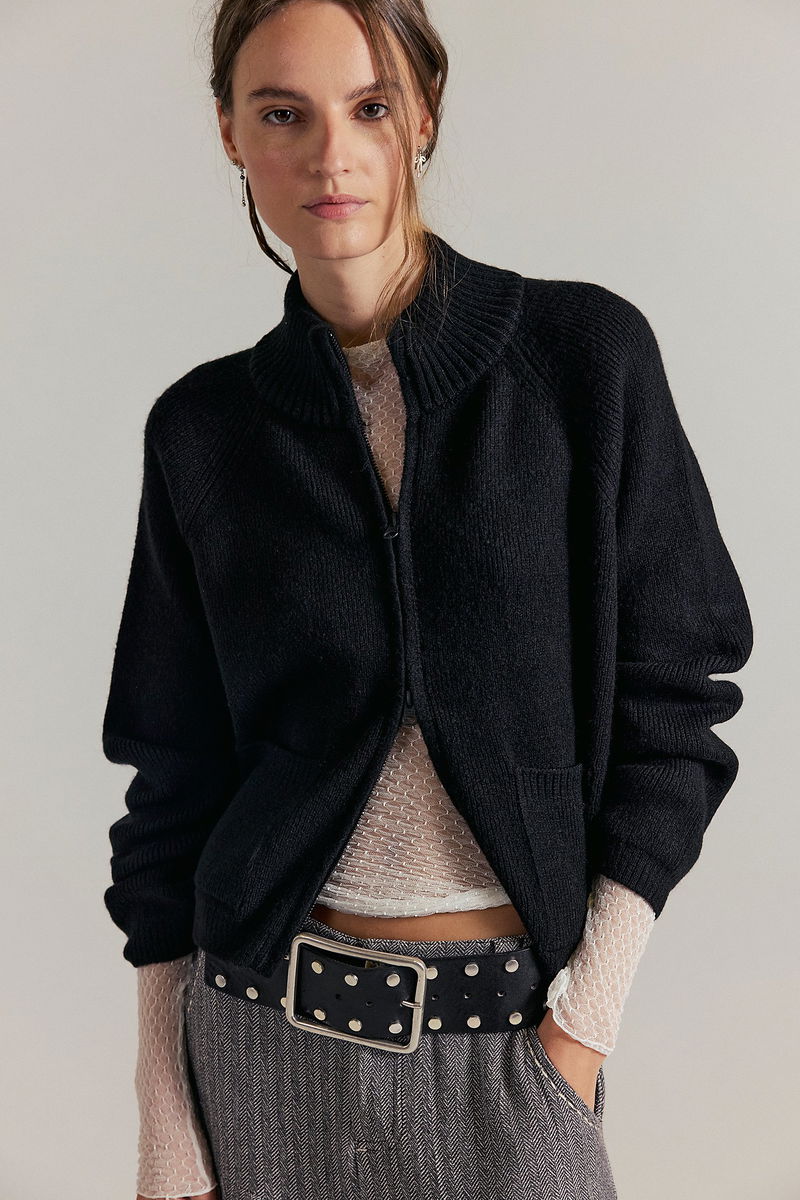 An essential knit to add to your collection, this sweater from We The Free is featured in a classic ribbed fabrication with a high collar and zip-front closure for ultra-effortless layering.