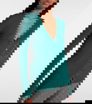 The Emma cardigan from Gabriela Hearst has a fitted, long-sleeve silhouette that reaches down past your natural waist. This elongating design is made from pointelle-knit cashmere and silk yarn.