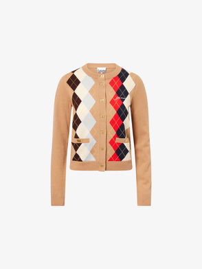 Argyle Button Cardigan - Brown