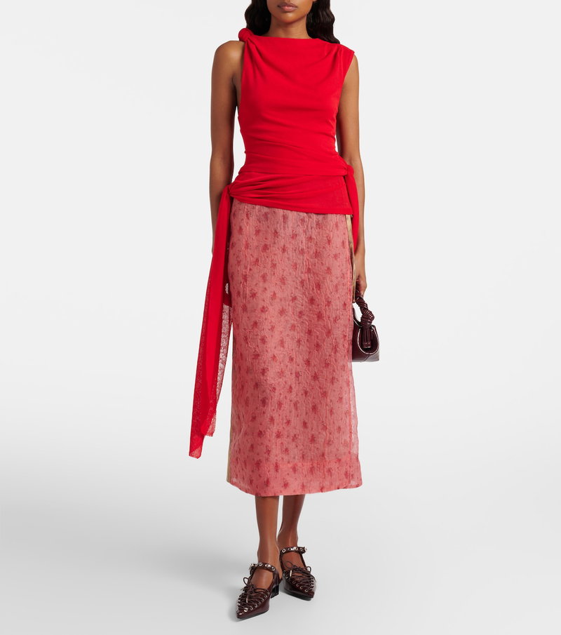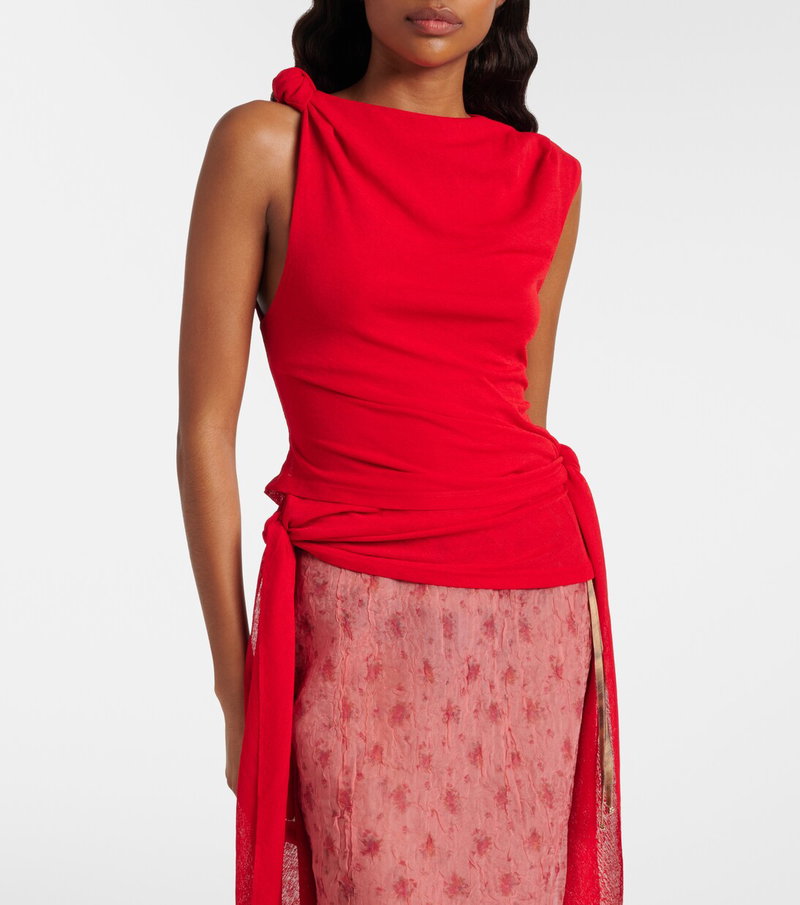 Copenhagen-based brand Ganni reshapes the meaning of Scandinavian style with its whimsy and playful approach to fashion. Designed with an asymmetric silhouette, this top boasts a knot detail on the shoulder and cascading panels on the sides.
