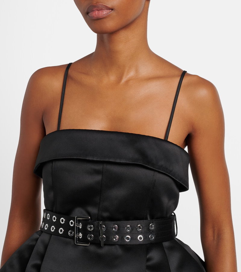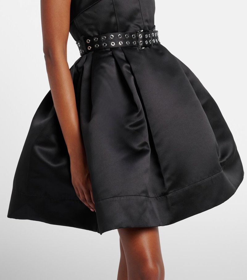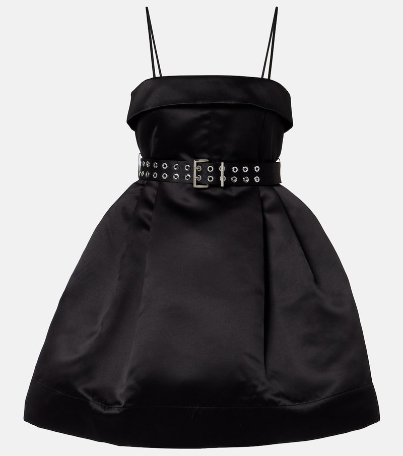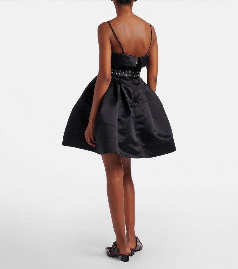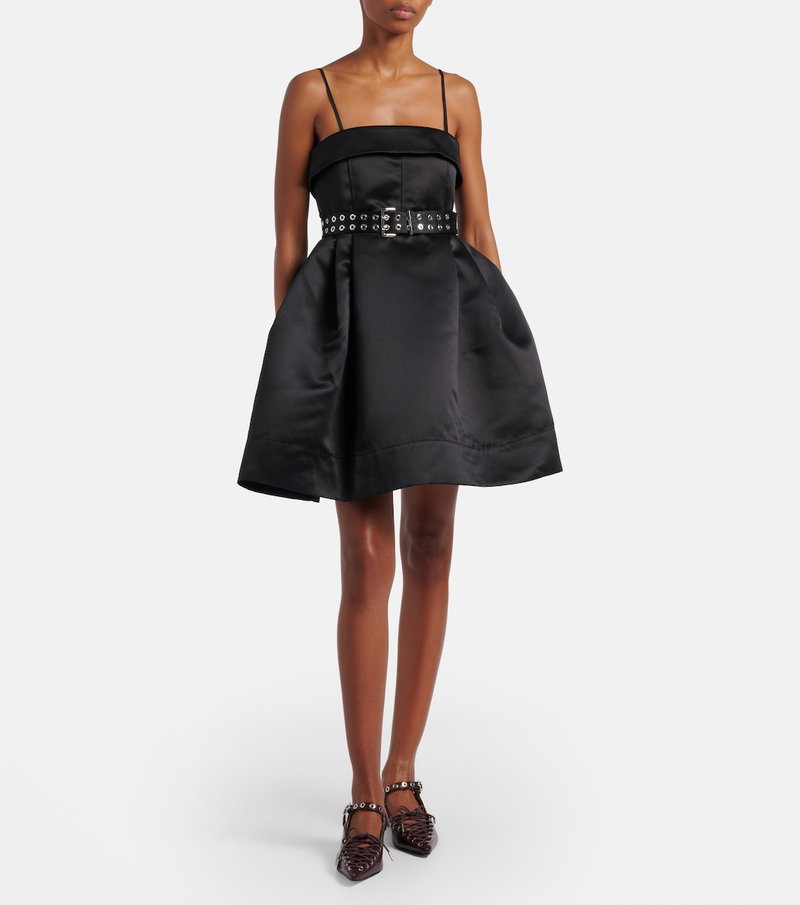 Copenhagen-based brand Ganni reshapes the meaning of Scandinavian style with its whimsy and playful approach to design. This belted minidress is made from satin to an ultra-flared silhouette with an inner crinoline.