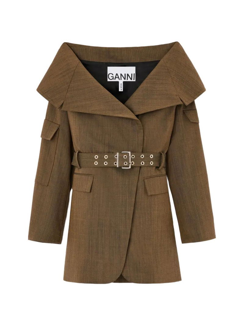 Belted Wide-Collar Jacket.