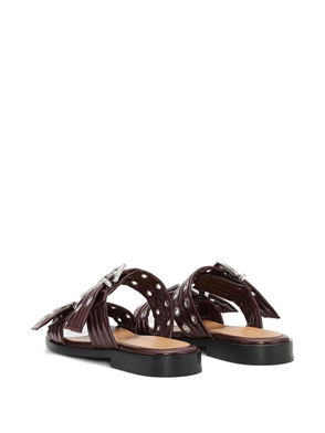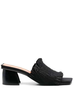Buffed calfskin heeled sandals in black.