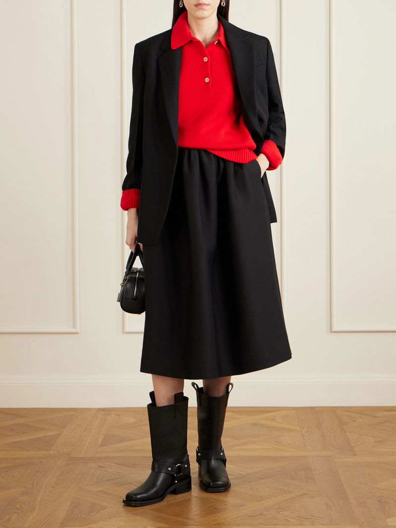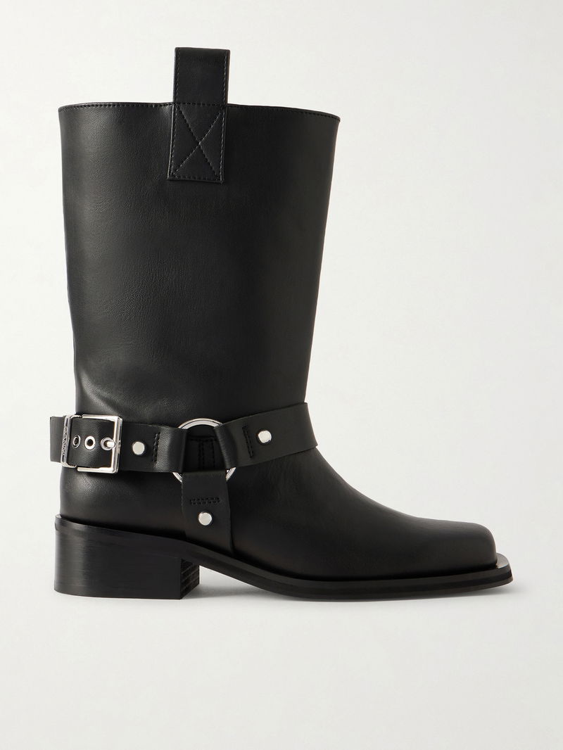 GANNI's biker boots feature a single buckle with silver-tone hardware, echoing the brand's playful approach to the classics. They're made from a blend of recycled fibers - including recycled-leather - in an effort to combat waste in the fashion industry. Team them with floaty skirts or shorts.