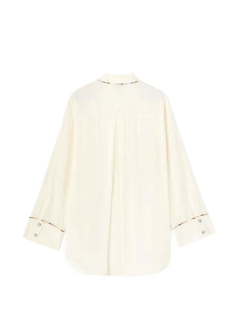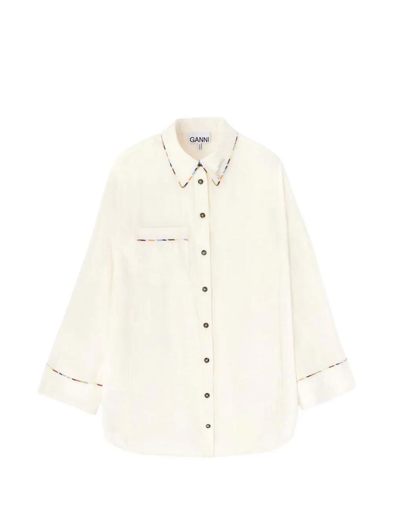 Beige, chest pocket, button fastening, long sleeves, buttoned cuffs, classic collar.