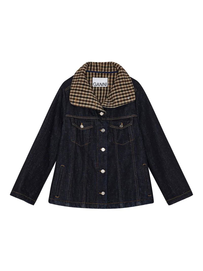 Checkered-collar Denim Jacket - Blue