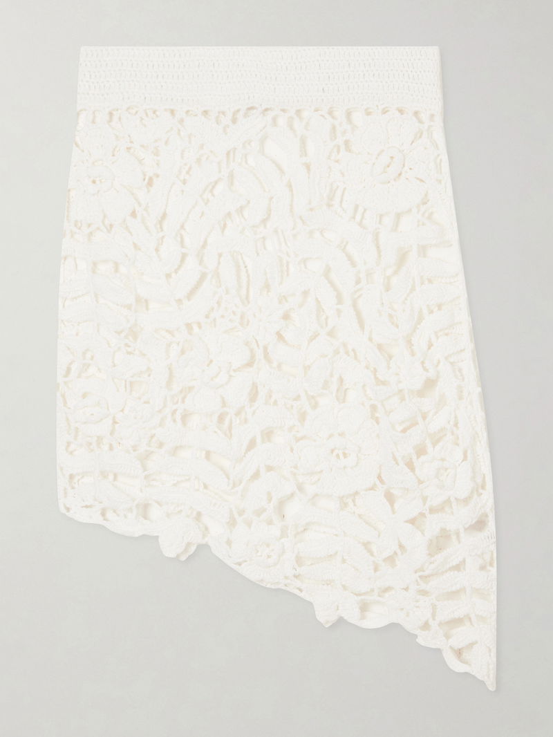 GANNI’s skirt reflects the label’s playful approach to texture and craft. Made from organic cotton, it's crocheted in a floral motif and falls to an asymmetric hem that enhances the fluid silhouette.