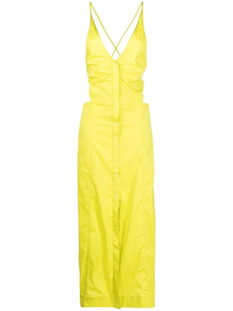 Crossover-strap Button-fastening Dress - Yellow