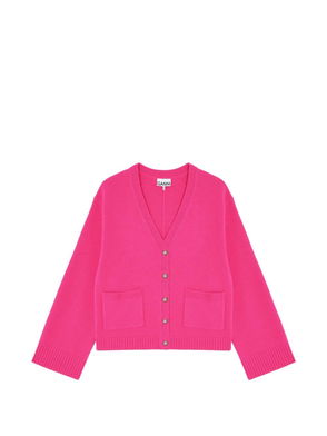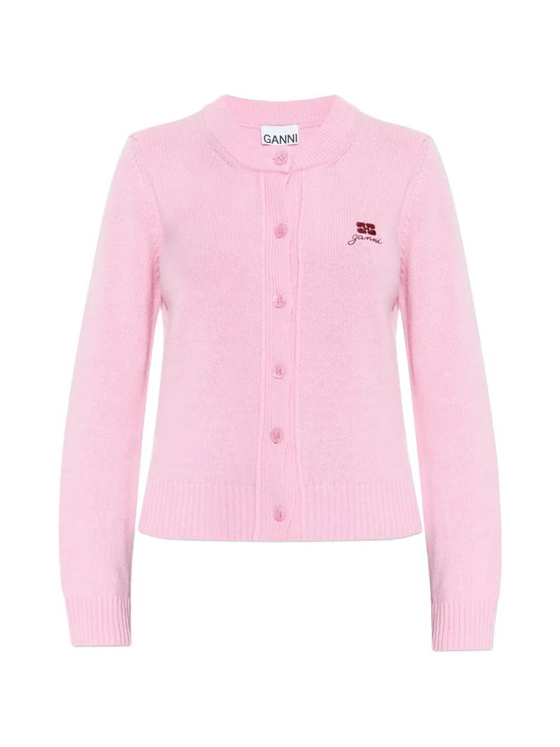 Pink, embroidered detail, button fastening, round neck, long sleeves.