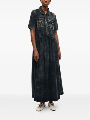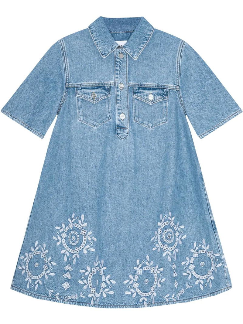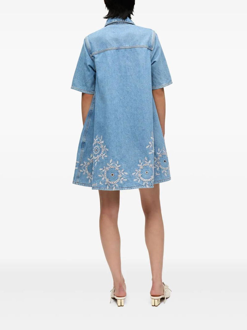 Embroidered Denim Dress - Blue