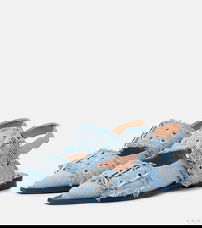 Eyelet Detailing Denim Ballerina Shoes - Blue