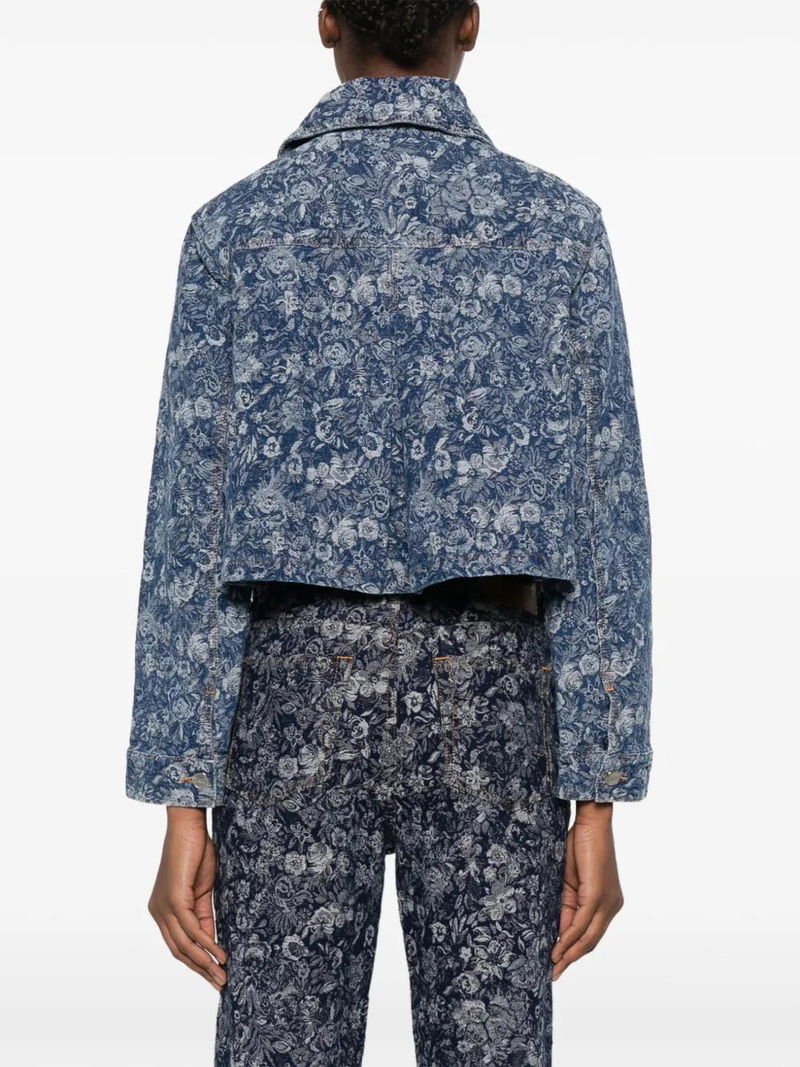 Blue floral print, front button fastening, point collar, chest pockets, long sleeves.
