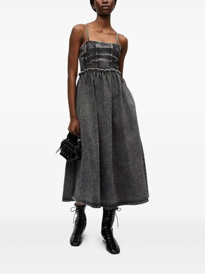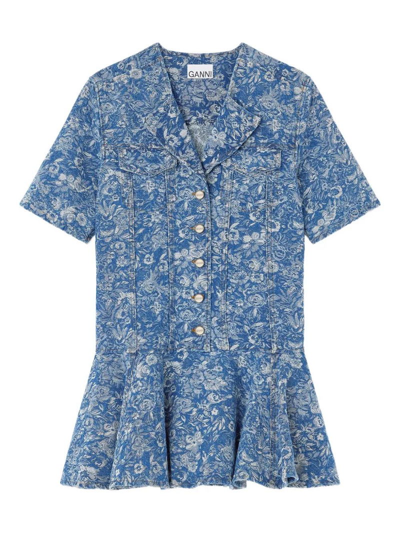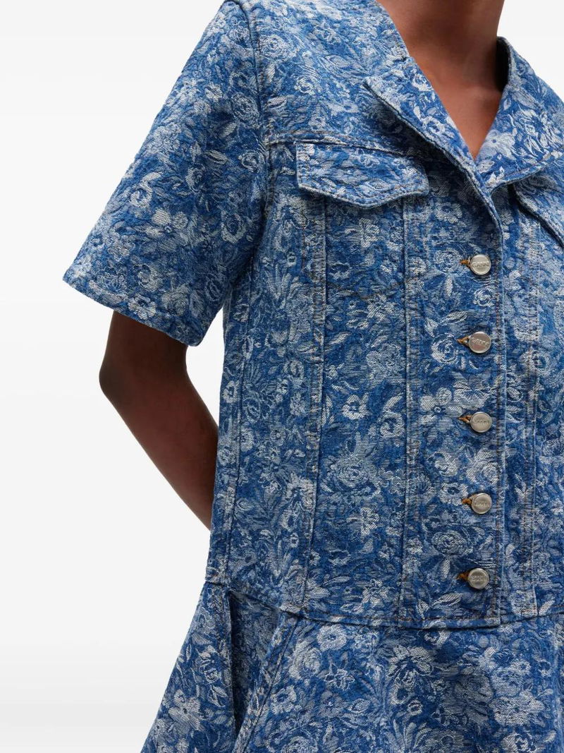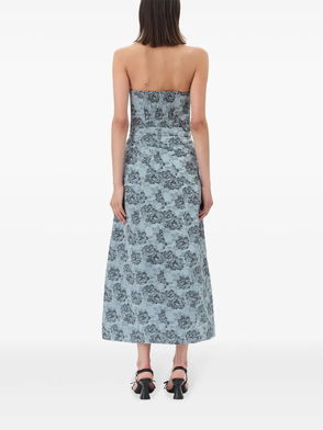 Floral-print Denim Midi Dress - Blue