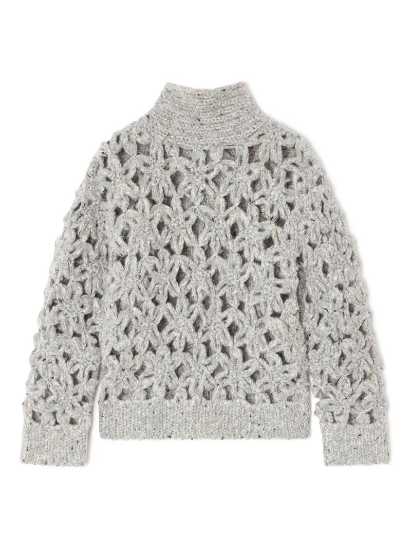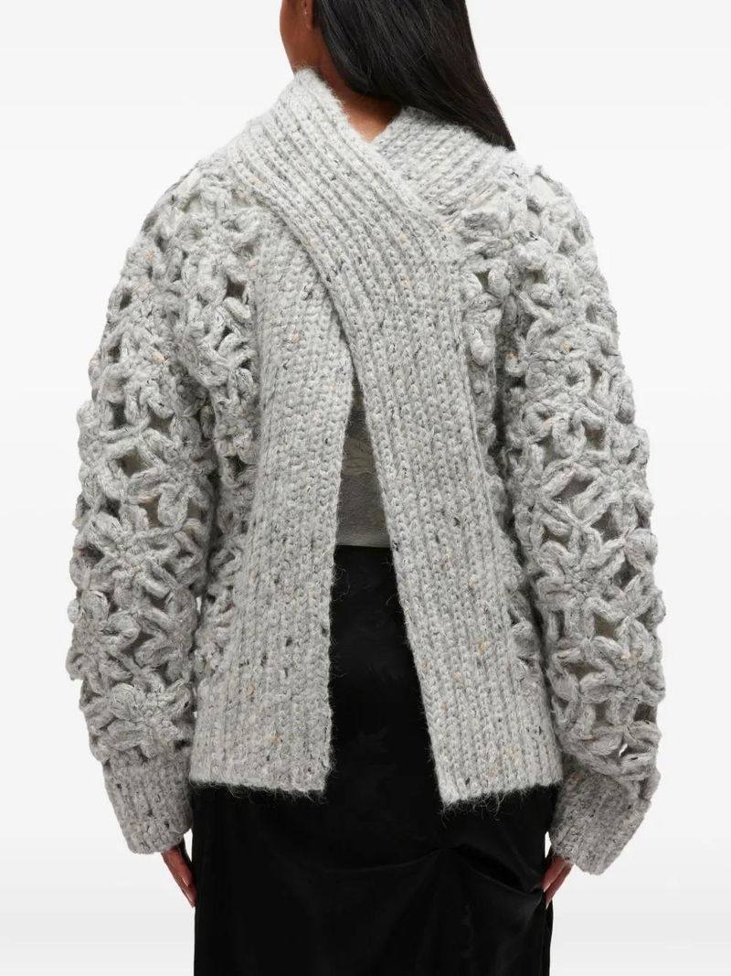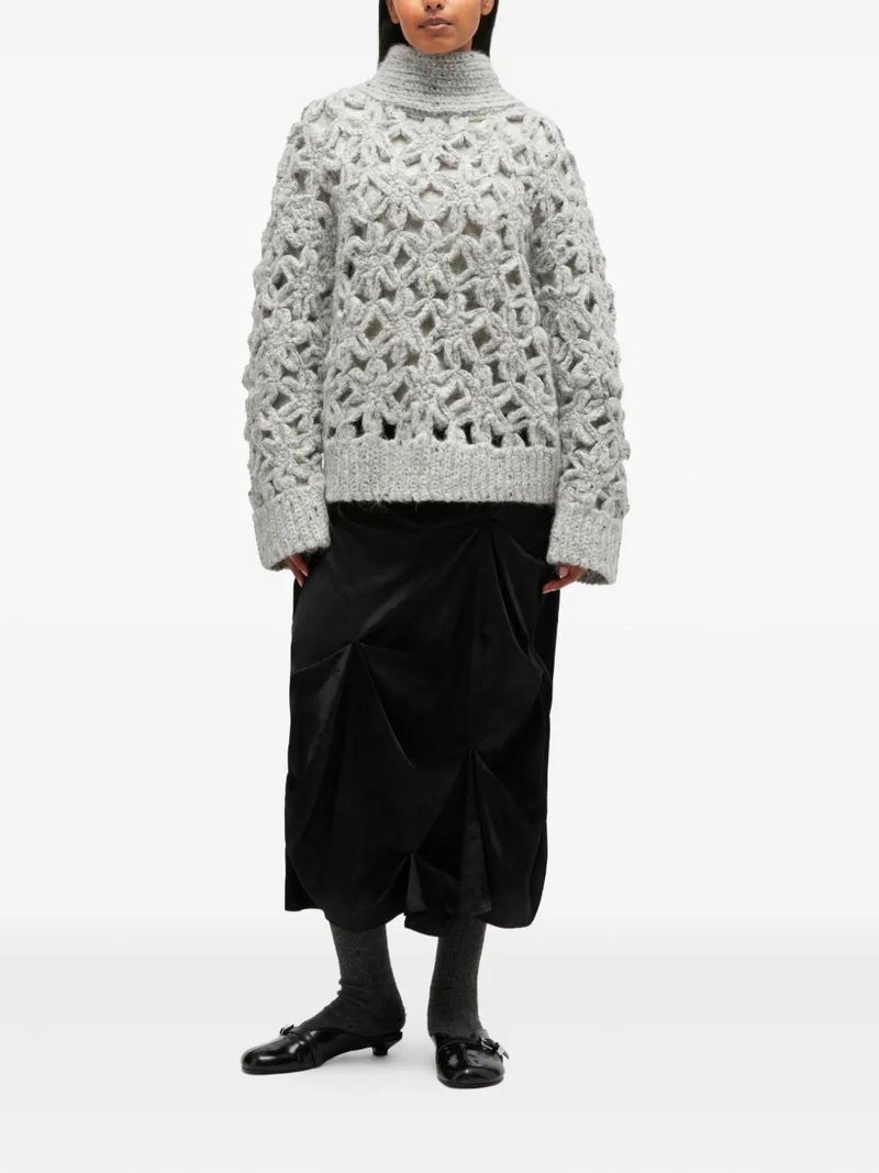 Flower Crochet Alpaca Sweater - Grey