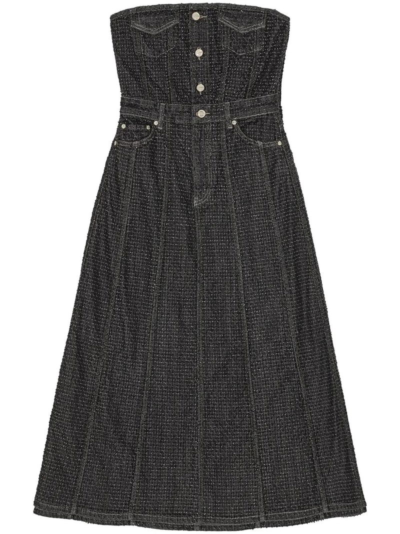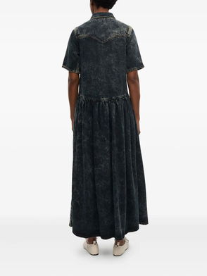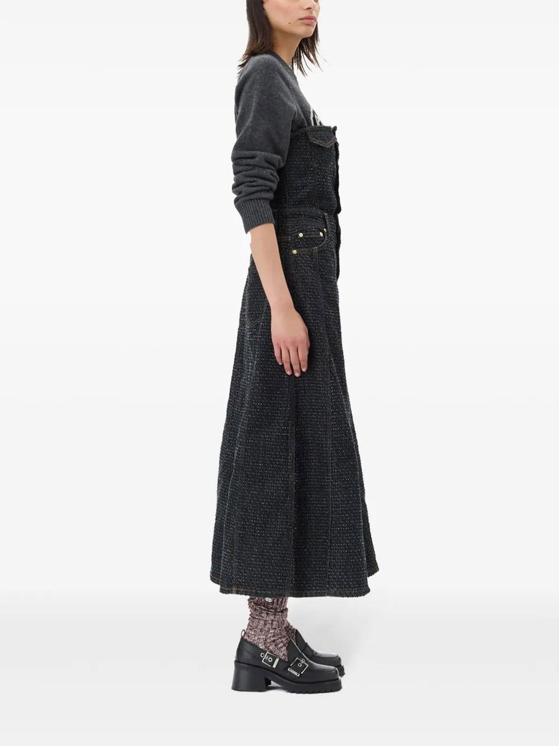 Fluffy Denim Midi Dress - Black