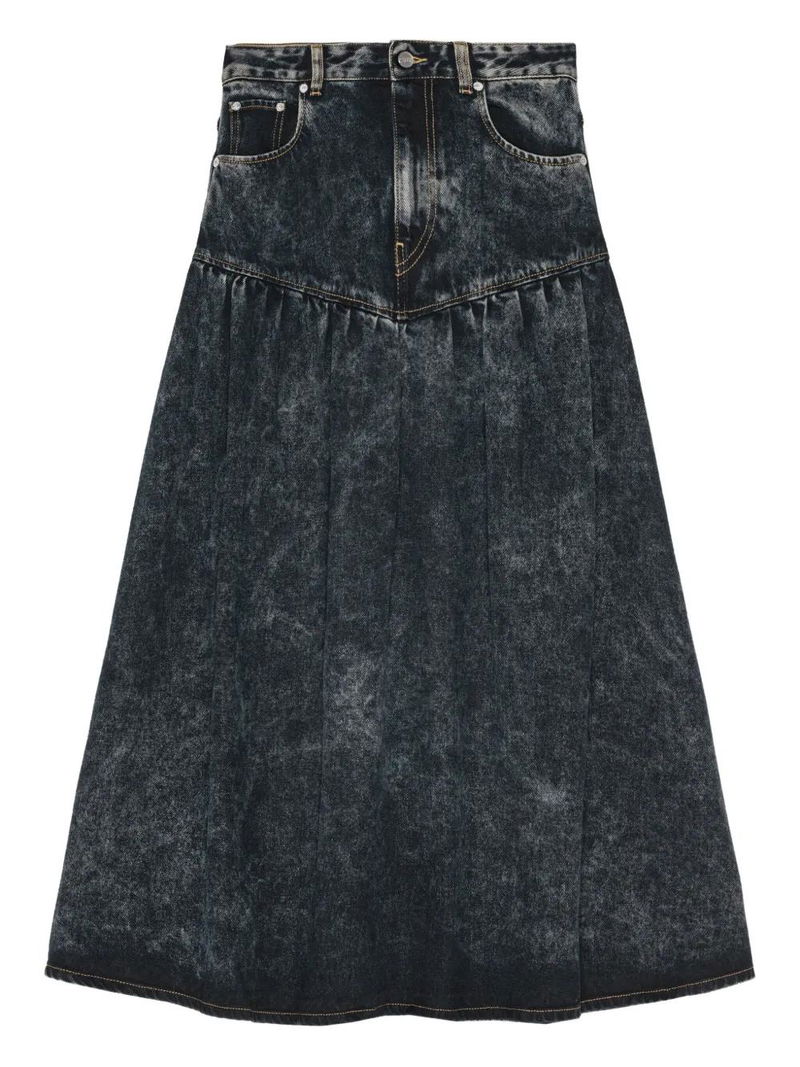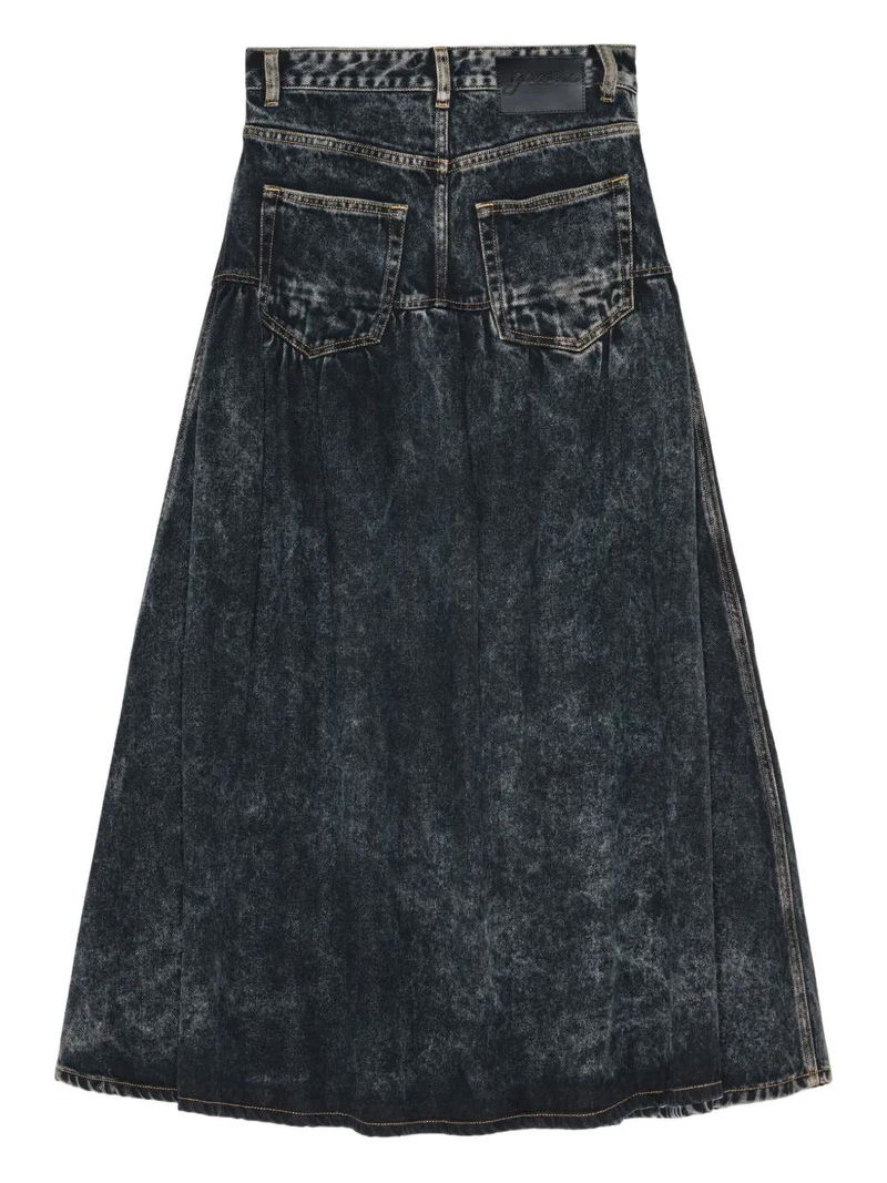 Gathered-detail Denim Skirt - Blue