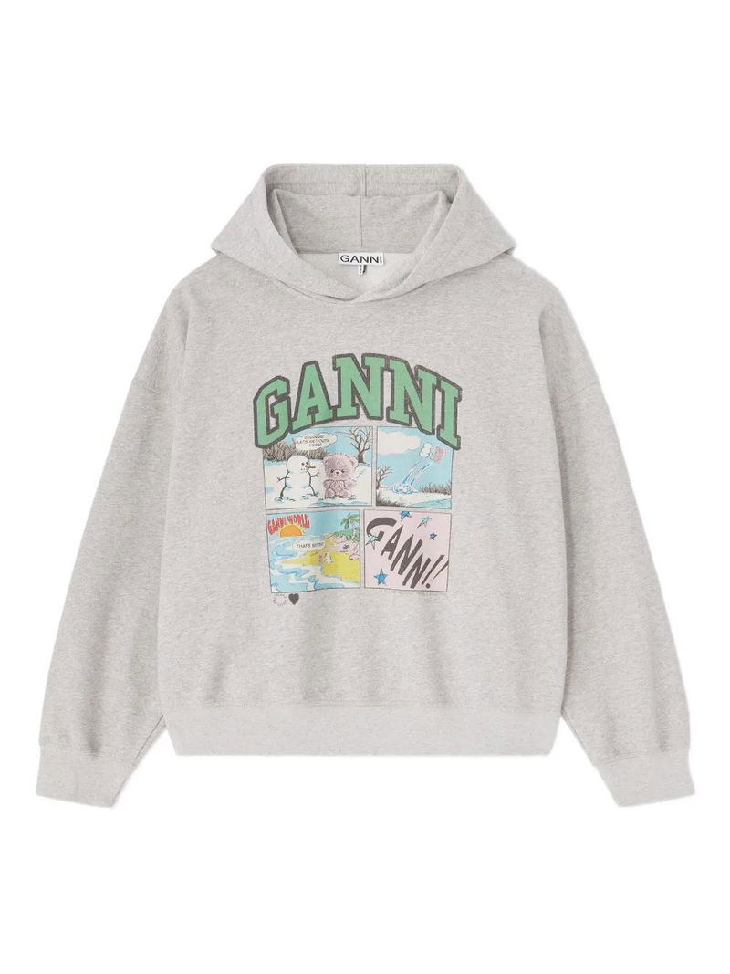 Grey graphic print hooded long sleeves ribbed hem ribbed cuffs.