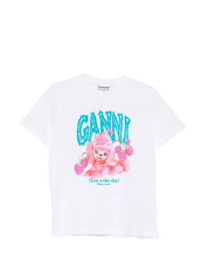 Black graphic print round neck short sleeves.
