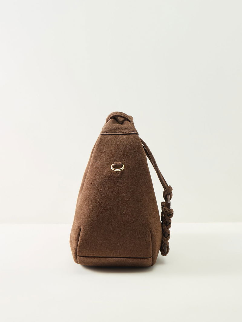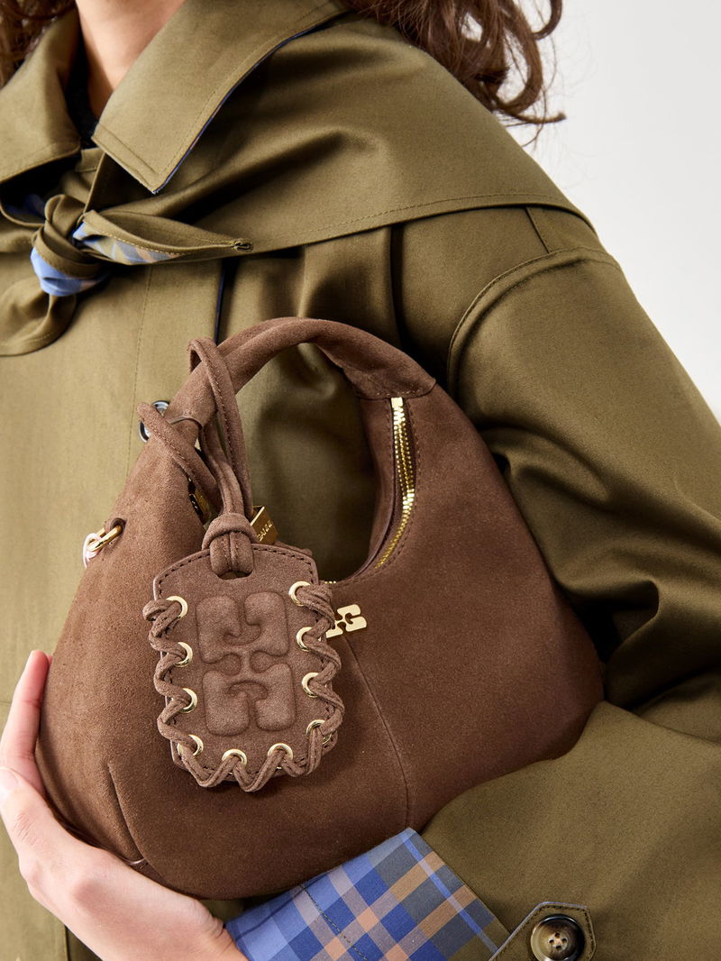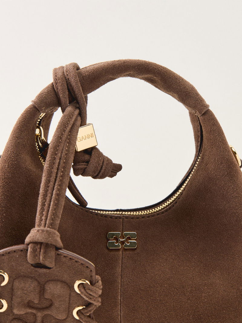 The Hobo Mini Recycled Suede Pelinova by Ganni delivers compact style with a relaxed, modern edge.