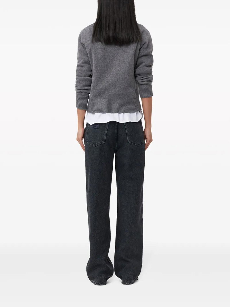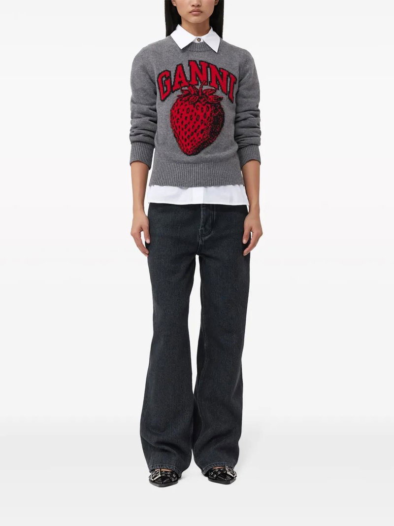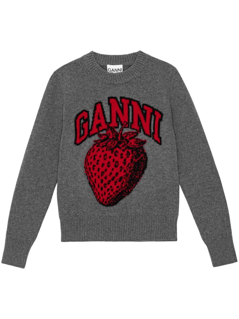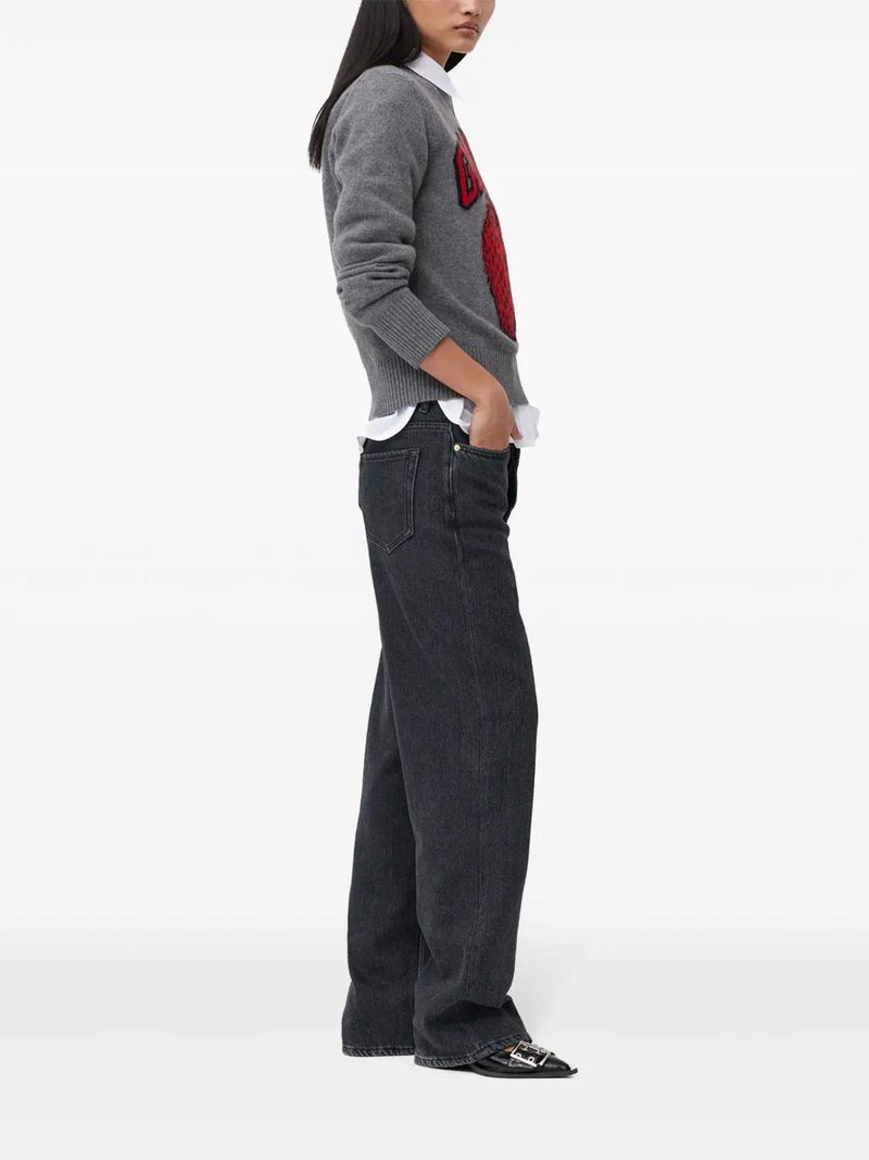 Black/grey/red intarsia knit intarsia-knit logo round neck long sleeves ribbed cuffs and hem.