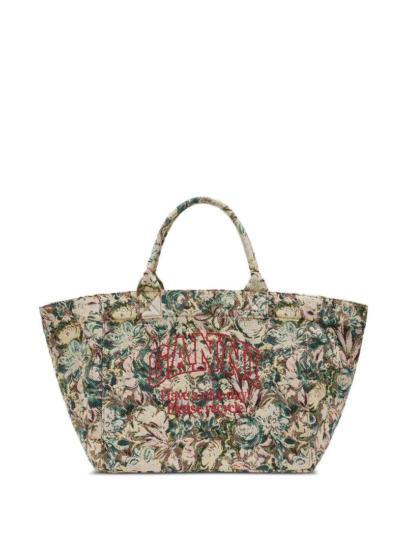Large Floral-pattern Tapestry-effect Tote Bag - Neutrals