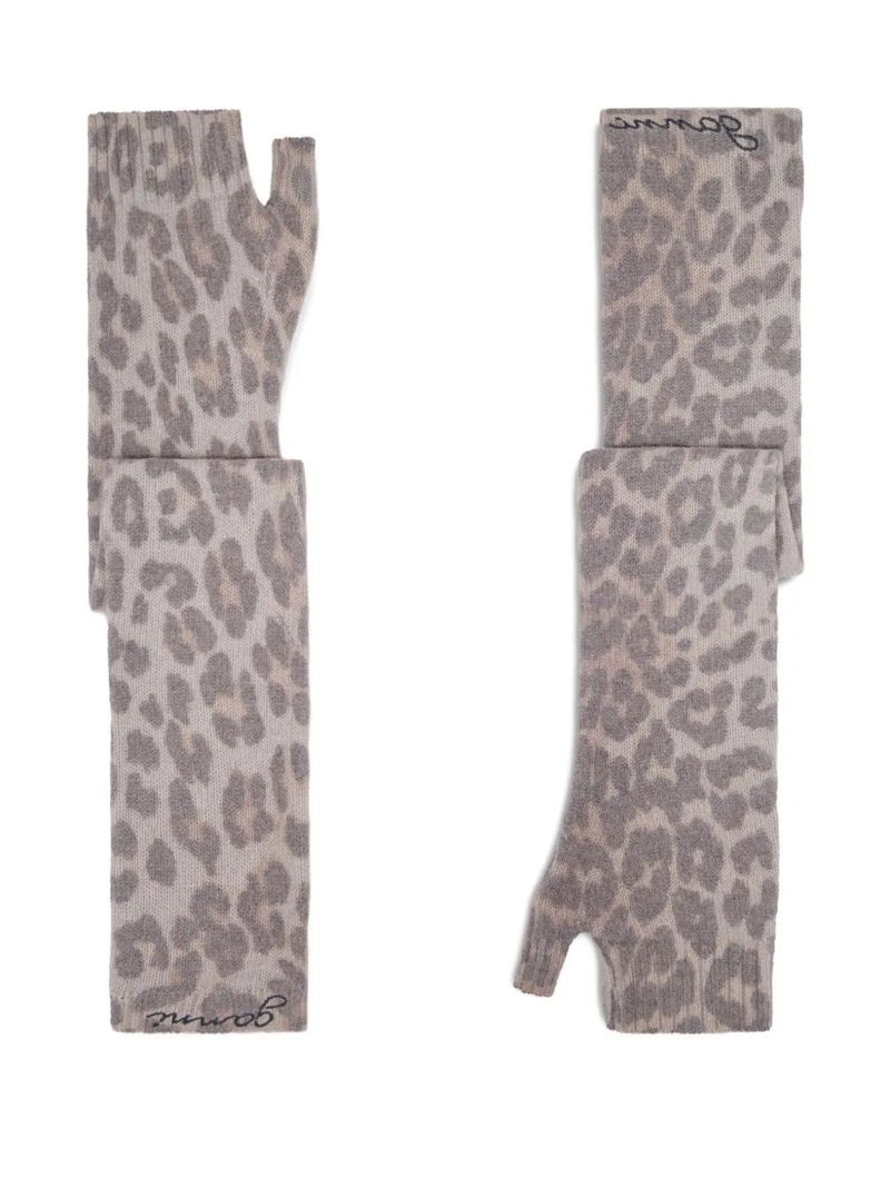 Leopard-print Fingerless Gloves - Brown